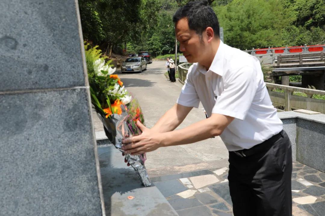 专题党课后,党员干部们共同前往革命烈士纪念碑。石莹桥边,潺潺流水声默默诉说着当年十六烈士英勇牺牲的故事。党员干部们向烈士鞠躬、默哀、敬献鲜花,并瞻仰了革命烈士纪念碑。