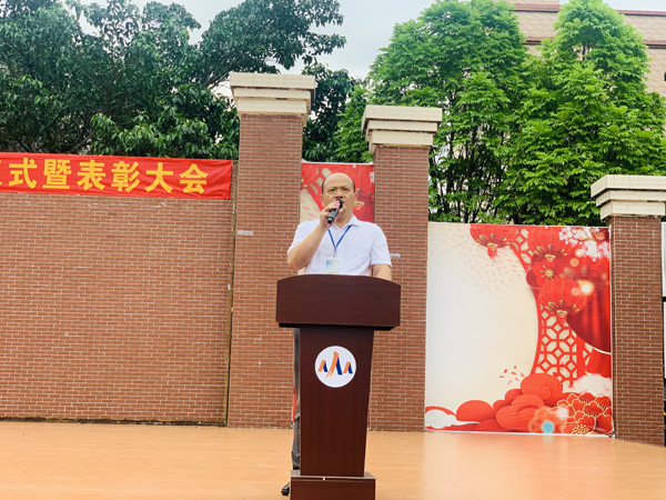 最后阮校长为本次活动致辞,阮校长对新团员表示祝贺并提出殷切希望,他希望同学们要珍惜青春年华,勤奋学习,富有责任意识,敢于担当,要以团员的标准严格要求自己,高扬理想的风帆,乘风破浪,勇往直前,为前程奋斗,为桂南争光。