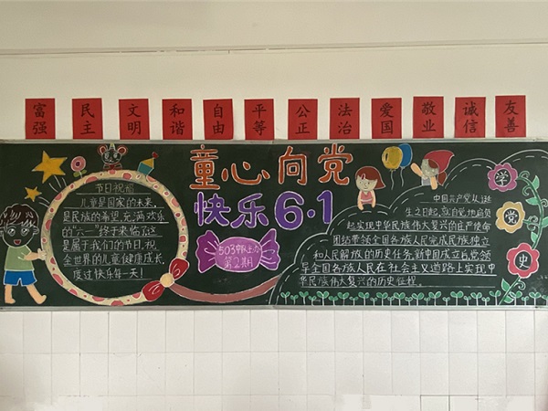 在五月初,小学部的每位班主任和学生精心创办了一期以“红领巾心向党——争做新时代好队员”为主题的黑板报。同学们围绕主题精选板报内容,查找资料,设计样式,图文并茂地营造出浓浓的节日气氛,设计出版了一幅幅精美的黑板报,体现了同学们对美好事物的向往,对党,对祖国,对人民,对生活的热爱。5月27日由来自各个科组的老师作为评委,对本次黑板报进行了评比,最终评选出一等奖、二等奖、三等奖若干名。