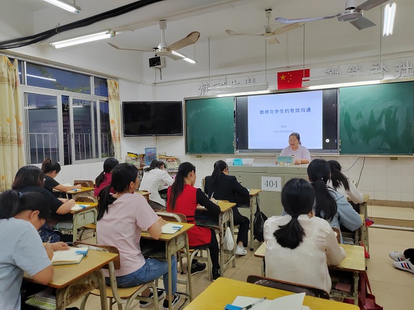 老师们在认真聆听讲座后,一致认为杨主任分享的沟通方法和策略都特别实用。通过此次培训,老师们深刻地认识到:教师与学生的沟通渗透在教育教学的每一个细节中,教师的一言一行都在向学生和家长传递着自己的教育理念;有效地沟通会使师生间的关系更加亲密而融洽,从而更好地促进教育教学工作。老师们也表示,在今后的工作中要与学生多进行有效沟通,多鼓励、多认可学生,从内心尊重并接纳他们,时刻注意言行举止,建立良好的师生关系。