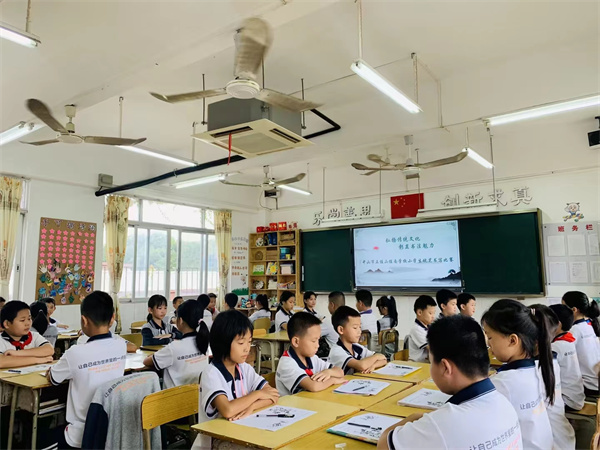 学生比赛采用现场形式进行,全校1—6年级全体学生同时参赛,形成“人人参与”的比赛规模。比赛中,桂南学子们神情专注,他们用心执笔,圆润饱满,字调间距匀称,句子书写规范、美观。一张张硬笔书法作品或挺拔,或飘逸,或清秀,或豪放,风格各异,赏心悦目。一笔一画,流畅自如,一撇一捺,峰回路转。在小小方格之间,是心性的修炼,是风骨的展现,是热情的滋养,更是文化的传承。